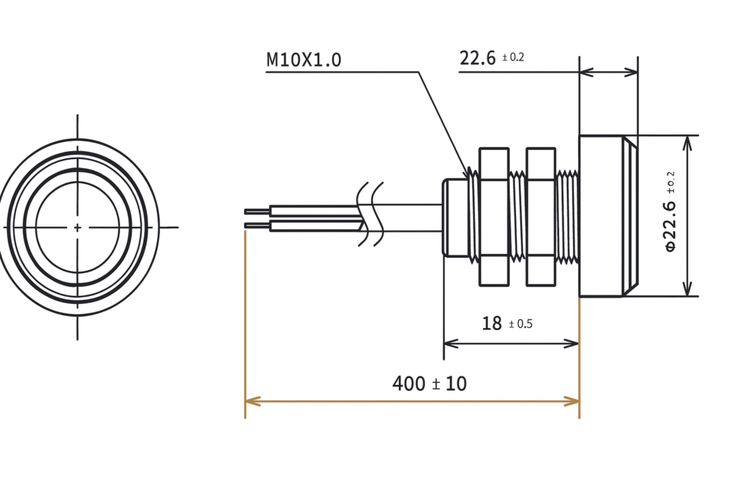 • Kompaktowa obudowa z tworzywa sztucznego i gwintem M10.
