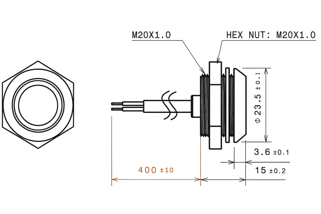 • Metalowa obudowa z gwintem M20, idealna do zastosowań przemysłowych.