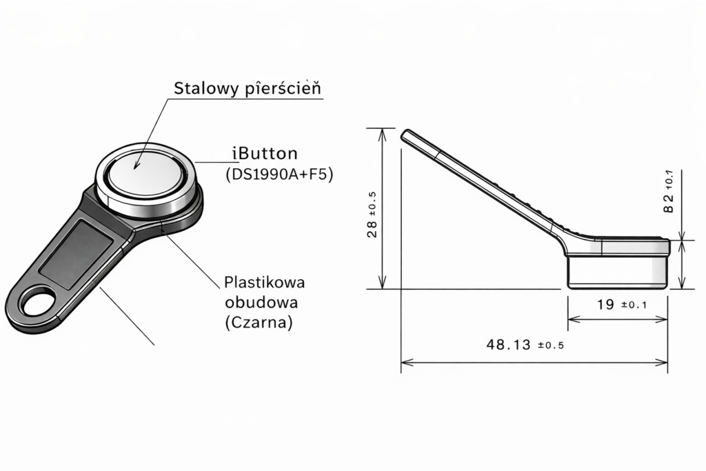 Wewnątrz znajduje się sprawdzony układ DS1990A (F5), zamknięty w trwałej obudowie z tworzywa sztucznego. Sam klucz nie jest magnesem – elementem współpracującym z polem magnetycznym jest wyłącznie zewnętrzny pierścień stalowy.